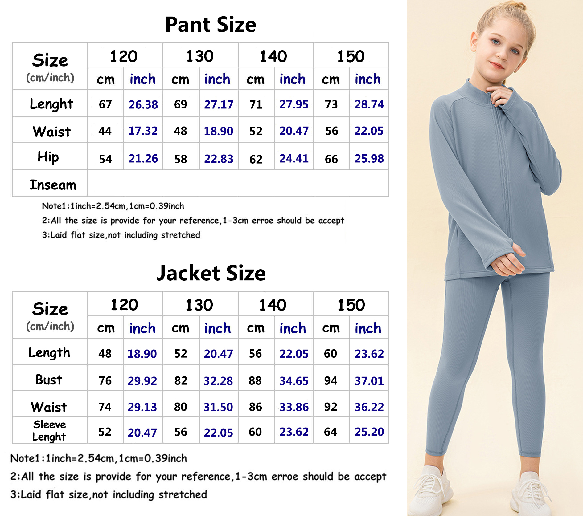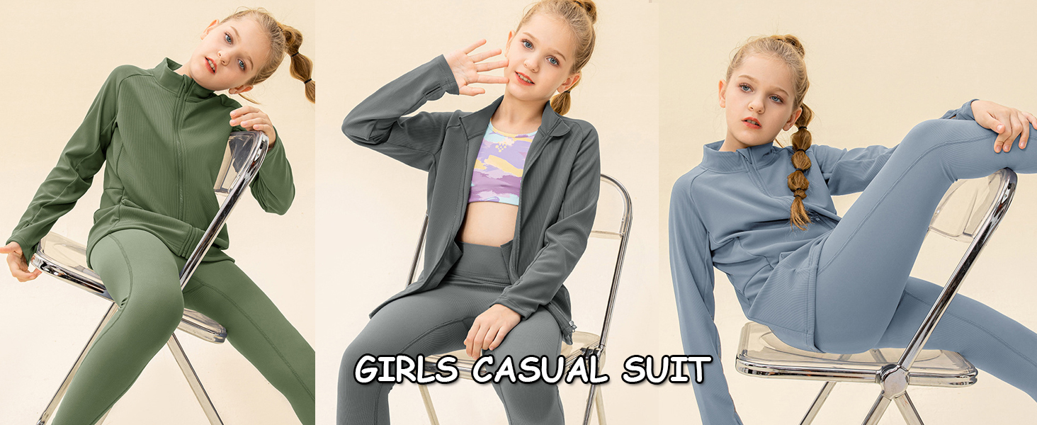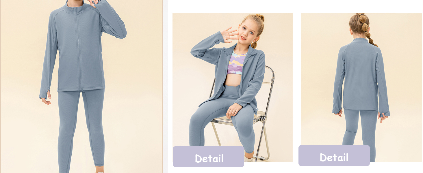 2 pcs Girls Winter JacketThick & Tight Kids Pant Yoga Sports Sets